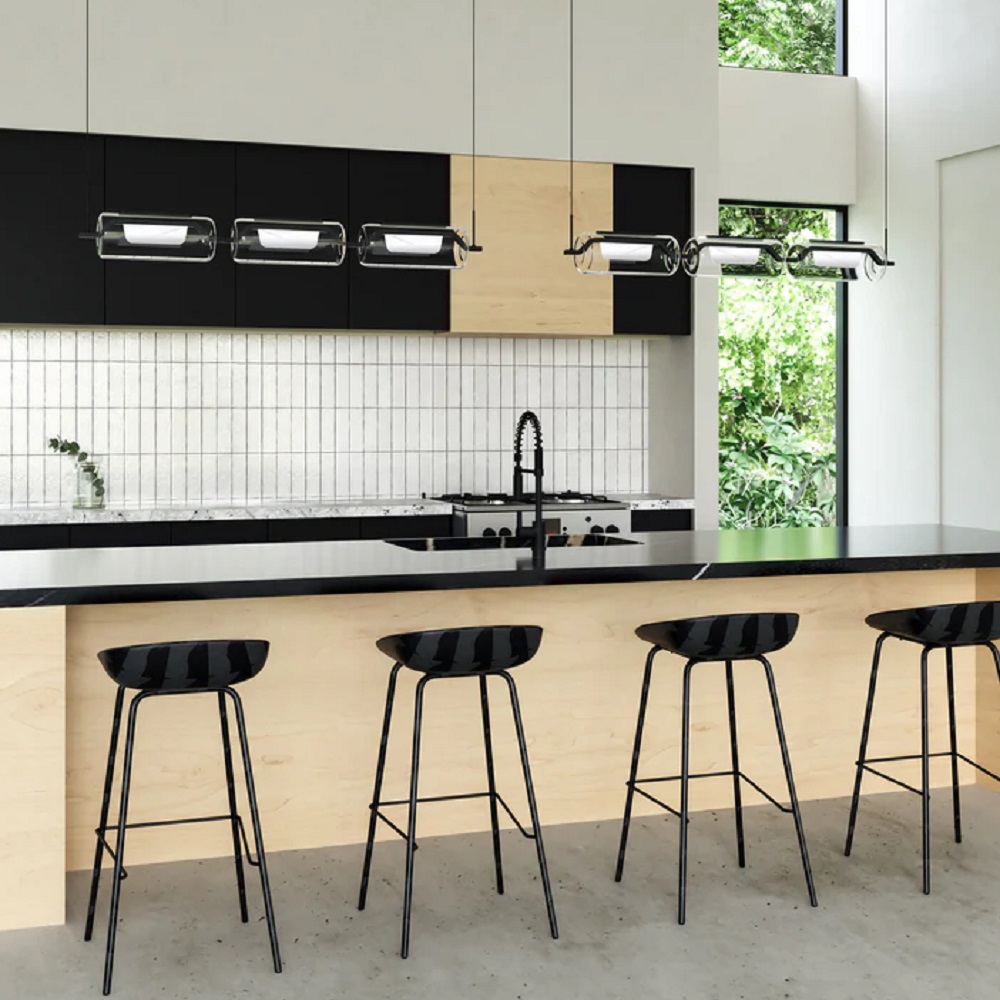 Light and airy, the Hilo Collection uses Kuzco’s signature light guide technology to illuminate your space brilliantly. The cylindrical glass shades allow for a clean, modern look that provides ample omni-directional light to any room in the house. Available in brushed or powder-coated options.